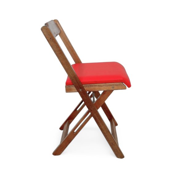 Cadeira Dobrável Preta em Madeira com Estofado Vermelho: Durabilidade e Conforto em um Único Produto