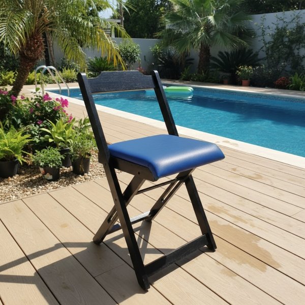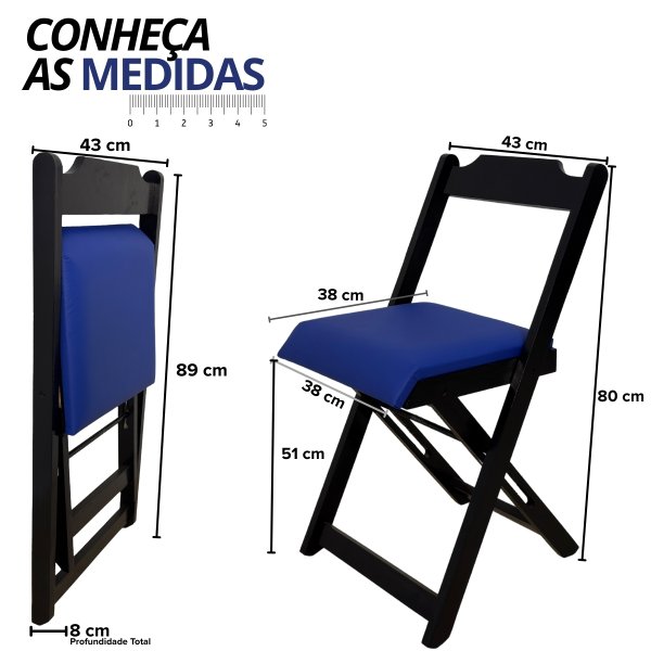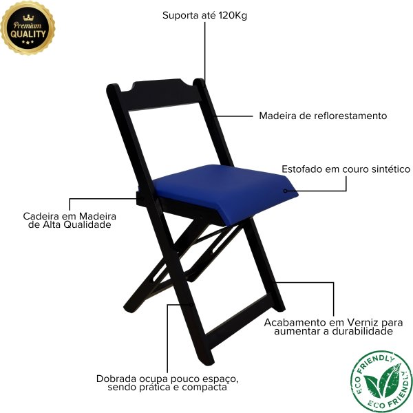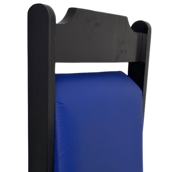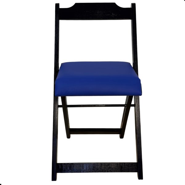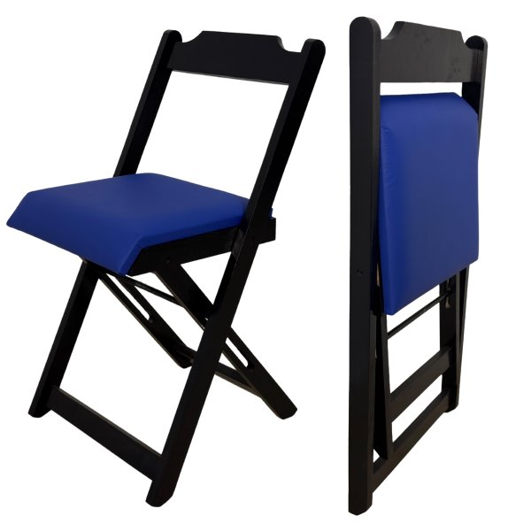 Cadeira Dobrável Preta com Estofado Azul: O Ponto de Equilíbrio para Sua Concentração
