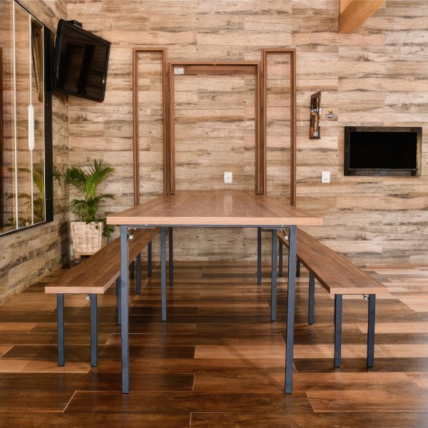 Explore a elegância e eficiência com nosso conjunto de mesa e bancos retráteis na cor Noronha, ideal para espaços amplos. Este conjunto, em um acabamento sofisticado de Noronha, apresenta um design moderno e perfeito para interiores contemporâneos. Com a mesa estendendo-se a 4,15m x 89cm, ela acomoda confortavelmente até 19 pessoas, ideal para grandes eventos ou reuniões de família. Tanto a mesa quanto os bancos são retráteis, podendo ser completamente recolhidos na parede, proporcionando uma solução inteligente para economia de espaço quando não estão em uso. Esse conjunto não apenas otimiza o uso do espaço, mas também adiciona um toque de sofisticação ao ambiente, oferecendo uma combinação perfeita de funcionalidade, beleza e design inovador, adequado para quem deseja hospedar encontros amplos sem comprometer o estilo.