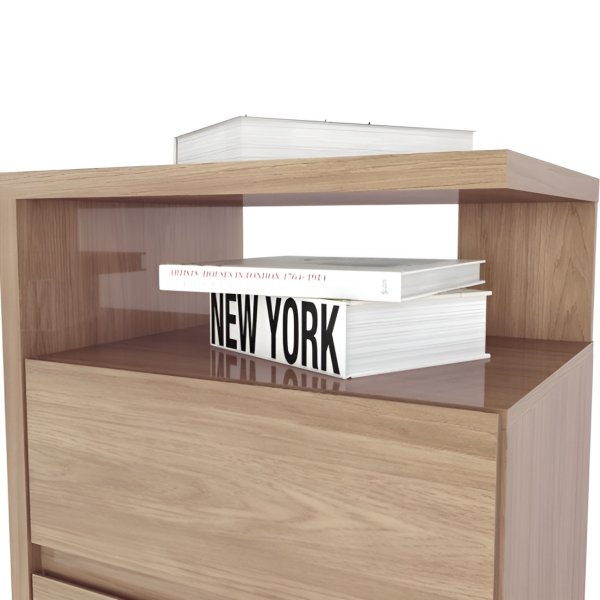 A Mesa de Cabeceira Campeche na cor Jequitibá Brilho é a escolha perfeita para quem busca um móvel marcante. O acabamento em pintura UV brilhante realça a beleza do Jequitibá, criando um visual único, e as duas gavetas com corrediças metálicas são ideais para organizar seus objetos.