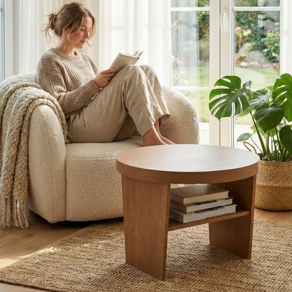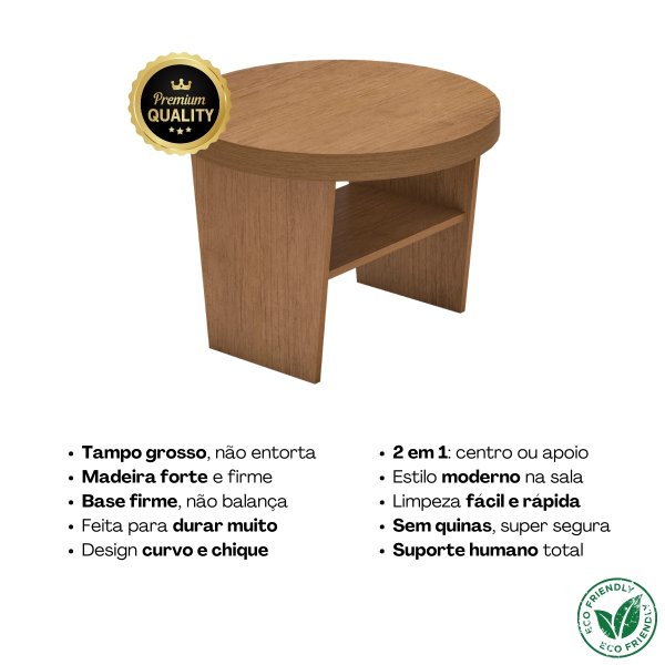 - Design Orgânico de 60cm: O formato redondo suaviza as linhas da sala e otimiza a circulação, sendo a solução inteligente para ambientes integrados e compactos.