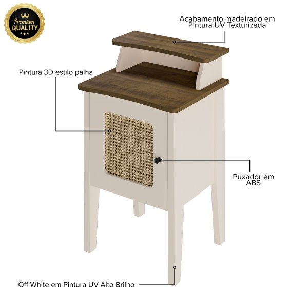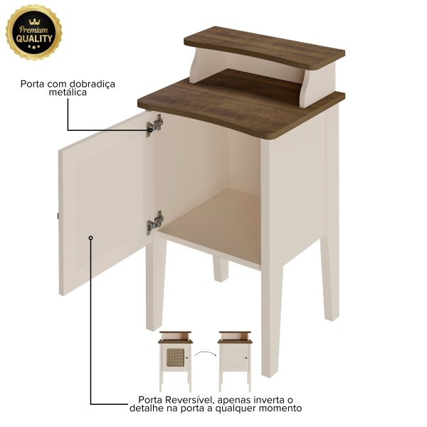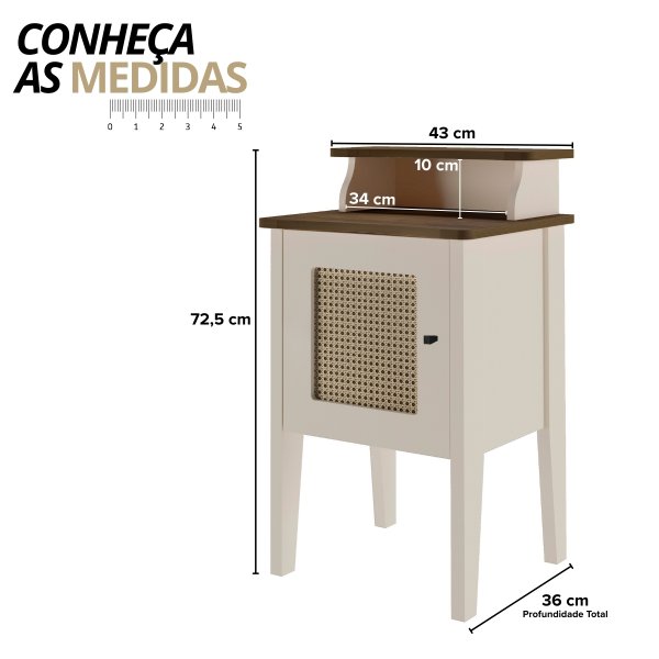 - Cores: Cinamomo/Off White, Carvalho/Off White, Pinho/Off White e Menta/Carvalho