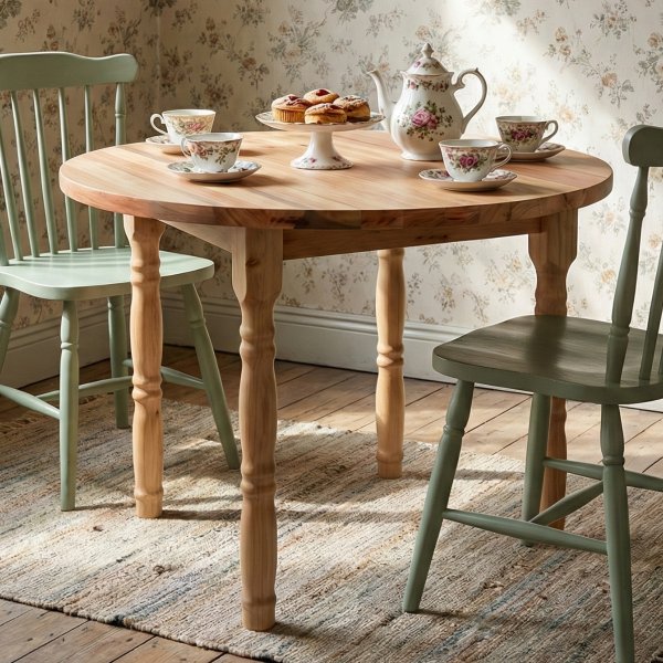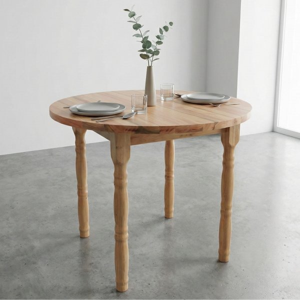 Mesa de Jantar 4 Lugares Redonda de Madeira Maciça - Natural - Dalas: A Essência da Madeira em seu Lar