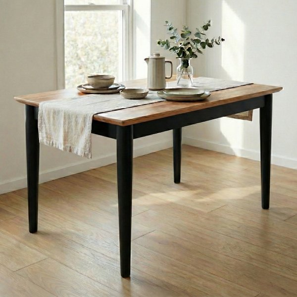Mesa de Jantar 4 Lugares Retangular de Madeira Maciça Milena - Preto/Natural: Elegância Moderna para sua Sala de Jantar