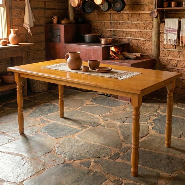 Já imaginou sua sala de jantar banhada pela luz do sol? Com a Mesa Retangular Dalas na cor Mel Brilho, você cria um ambiente mais claro, amplo e convidativo. Uma peça que combina com tudo, perfeita para quem busca um toque de natureza e modernidade.