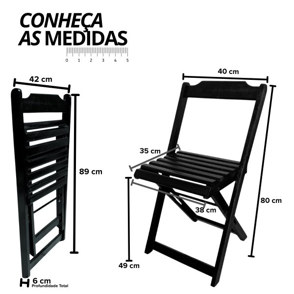 - Dimensões da Cadeira: Largura: 38cm, Profundidade: 36cm, Altura: 45cm