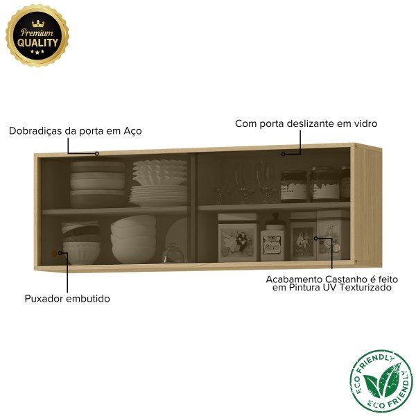 Módulo Aéreo Gabinete de Vidro para Cozinha 120cm - Glória Castanho: Design e Organização com Toque Moderno.