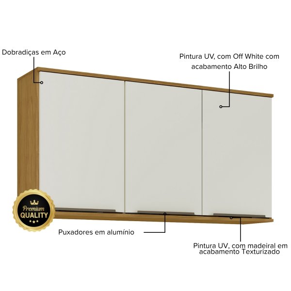 Módulo Aéreo de Cozinha Verace 3 Portas 120cm Marrocos/Off White: A Organização Interna Inteligente que sua Cozinha Merece