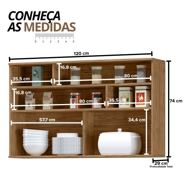 - Nichos Superiores para Praticidade: Mantenha seus potes de tempero, cereais ou itens decorativos sempre à mão e bem organizados nos nichos abertos.