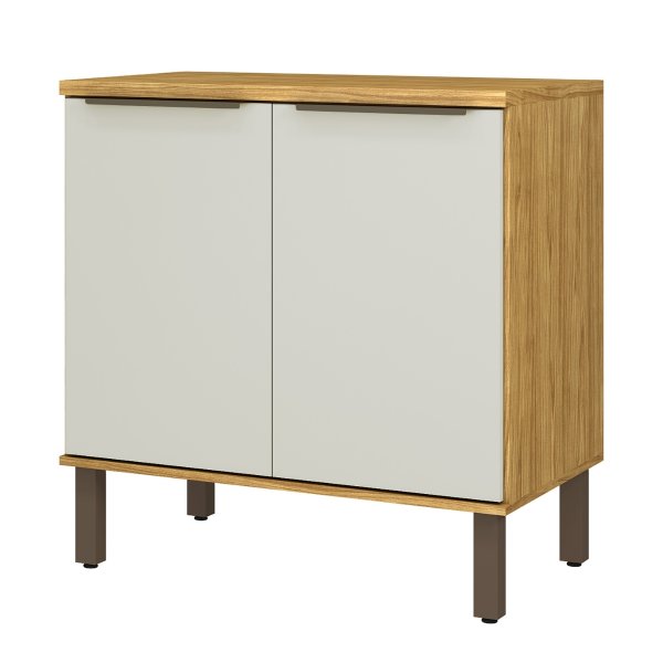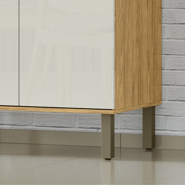 - Design Moderno em Dois Tons: Contraste sofisticado da caixa amadeirada (Marrocos) com as portas em Off White de acabamento em Alto Brilho.