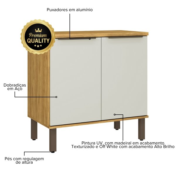 Balcão de Cozinha Verace 80cm 2 Portas Marrocos/Off White: Bancada Robusta para Organizar e Apoiar