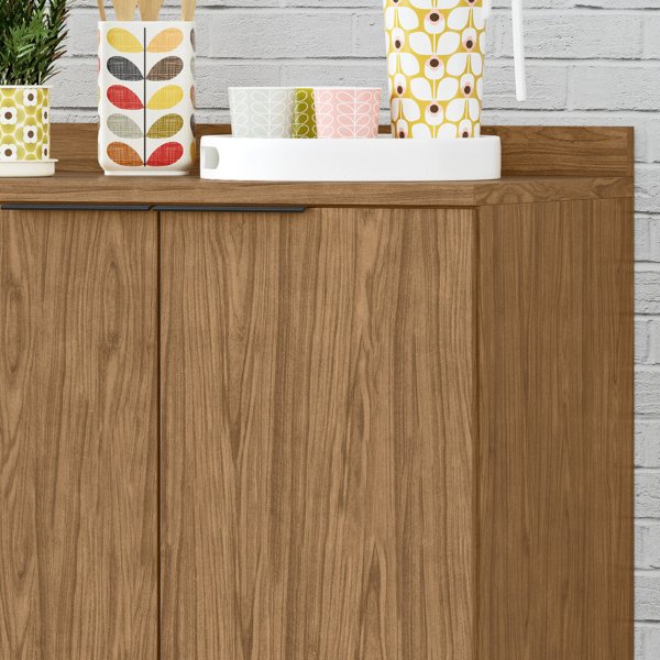 - Design Uniforme: A estrutura e as portas no mesmo acabamento Freijó texturizado criam um visual de móvel planejado.