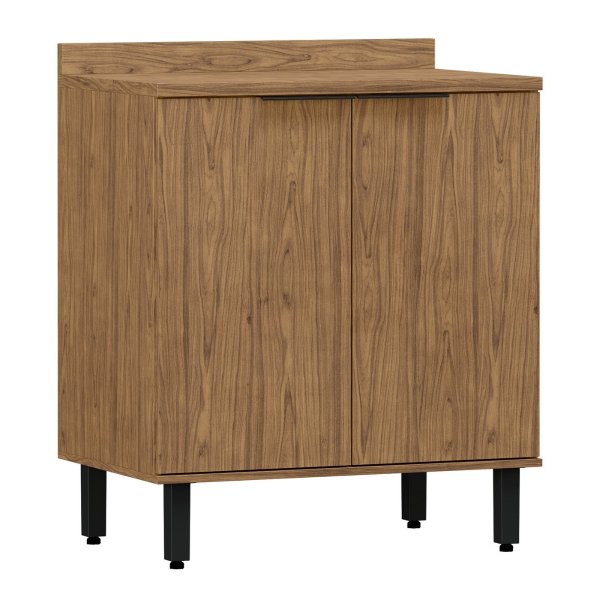 O segredo está na unidade de cores e acabamentos. Este balcão, com estrutura e portas no mesmo padrão Freijó texturizado, cria um visual contínuo e coeso, muito semelhante ao de um móvel feito sob medida. É a escolha perfeita para quem busca a estética da marcenaria com a praticidade e o custo-benefício dos móveis modulares.