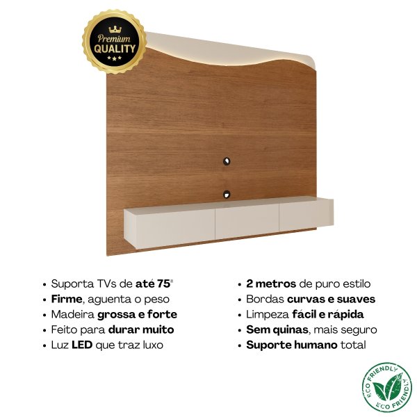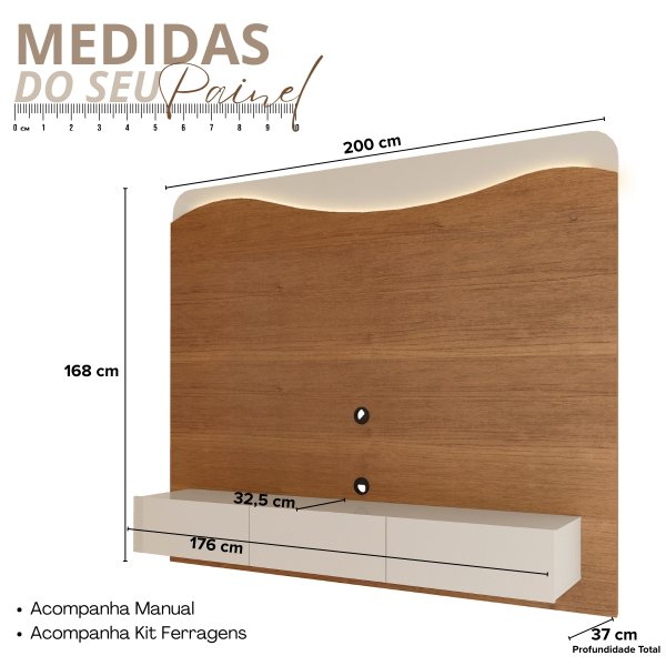 - Espacialidade Inteligente: Com 200cm de largura, organiza seu ambiente com precisão e preenchimento de parede.