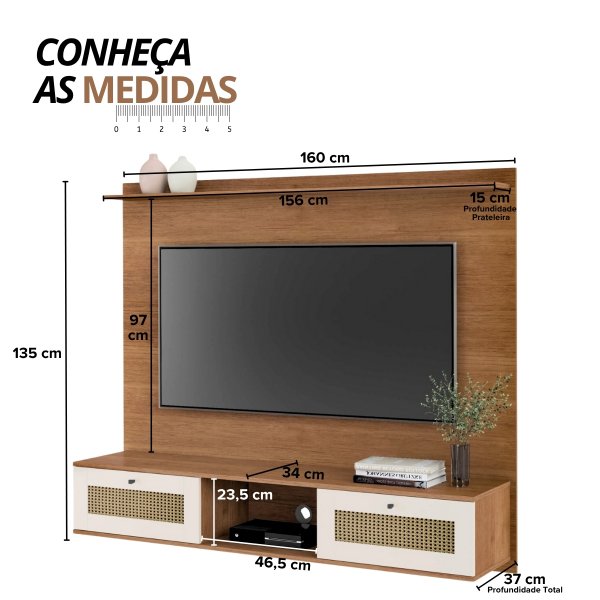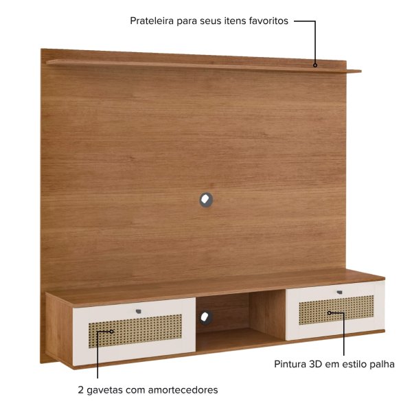 Na combinação de cores Cinamomo e Off White, o Painel para TV Trama é a solução ideal para quem busca beleza e funcionalidade em um único móvel. A pintura em 3D simulando a textura de palha, torna o móvel único.