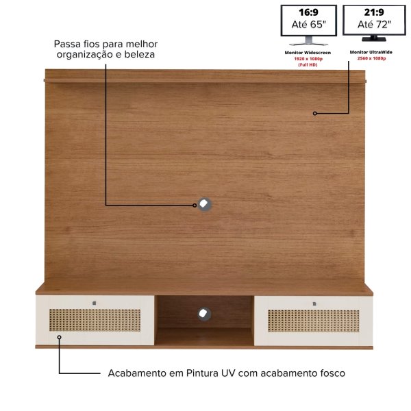 Painel para TV 72" Trama Cinamomo C/Off White: Organize sua Sala com Estilo e Sofisticação