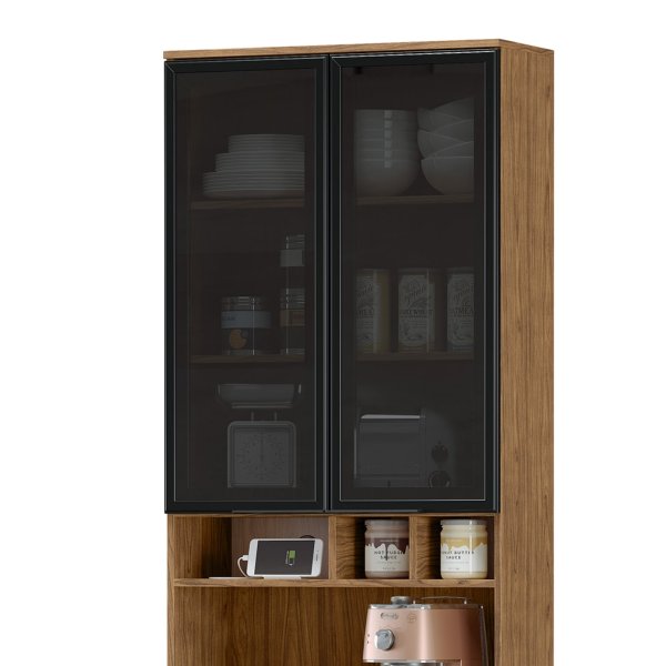 - Solução Completa de Armazenamento: Nicho para forno, vitrine de vidro e armário inferior unem todas as necessidades em um só lugar.
