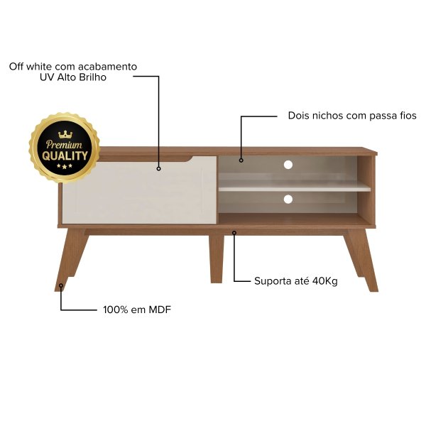 Com o Rack Lotus Cinamomo/Off White, você terá um móvel compacto e funcional para sua sala. Ele acomoda televisores modelos ultra widescreen com até 55” e televisores widescreen com até 60”, perfeito para apartamentos e ambientes com espaço reduzido.