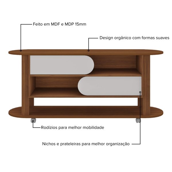 Deseja uma sala moderna e acolhedora? Apaixone-se pelo Rack Mundi! Com seu design orgânico e a combinação sofisticada de Cedro e Off White, ele traz leveza e elegância para o seu espaço. Compacto e funcional, oferece nichos e prateleiras para organizar seus objetos com estilo, tornando-se o destaque da sua decoração. A forma oval e o acabamento impecável adicionam um toque contemporâneo e garantem durabilidade. Perfeito para ambientes pequenos, o Rack Mundi une tendência e praticidade para transformar sua sala em um refúgio de bom gosto. Não é apenas um móvel, é uma expressão do seu estilo!