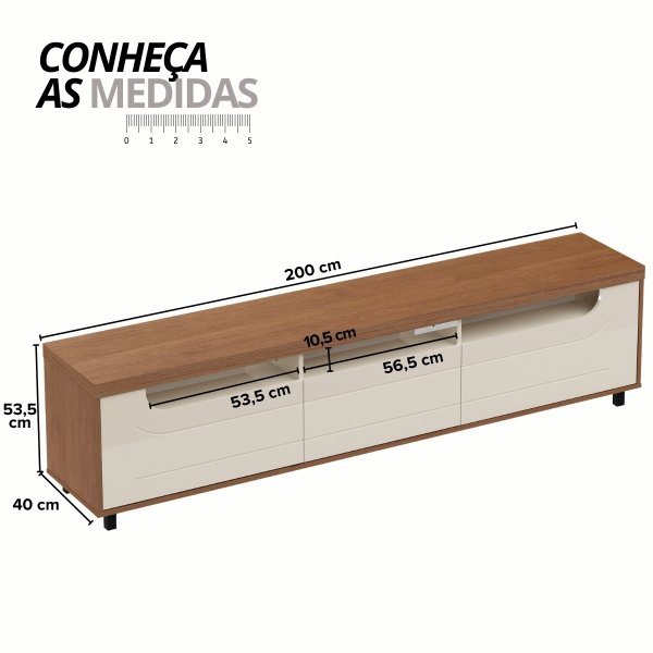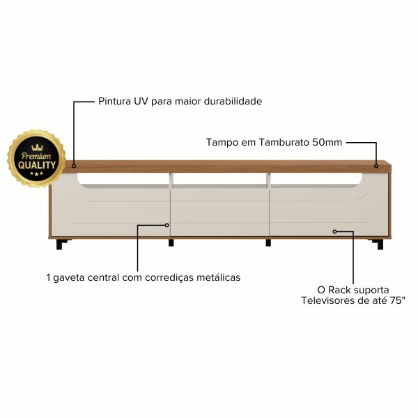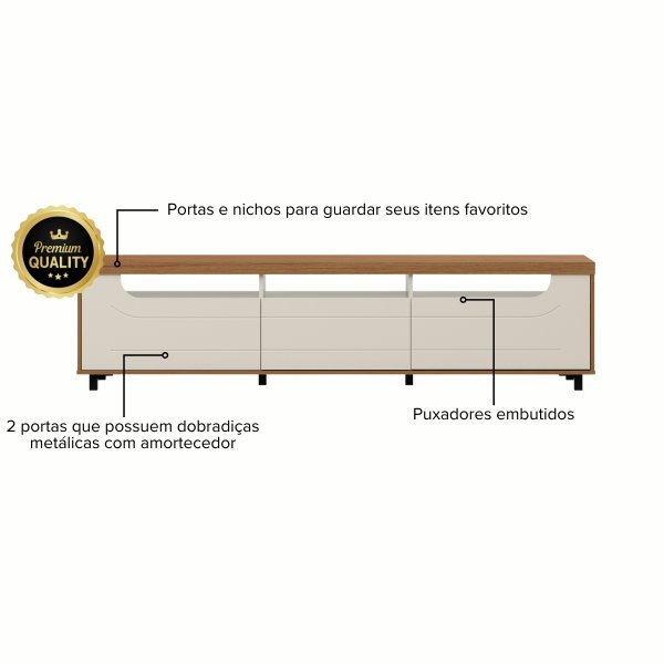 Rack Para Tv 75" 3 Nichos 2 Portas Mercury Cinamomo/Off White