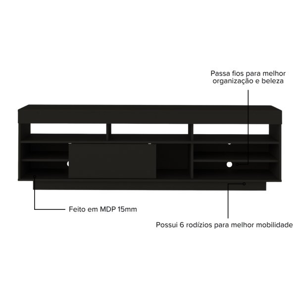 Deseja um móvel que seja o centro das atenções na sua sala? O Rack Treviso Preto é a escolha perfeita! Com um design elegante e imponente, ele traz um toque de modernidade e sofisticação para qualquer ambiente. Organize seus equipamentos eletrônicos, livros e objetos decorativos com estilo. O Rack Treviso Preto oferece amplo espaço em suas prateleiras e compartimentos, mantendo tudo no lugar e valorizando seus itens preferidos. A porta deslizante adiciona um toque de mistério, permitindo que você escolha o que exibir. Praticidade para o seu dia a dia!