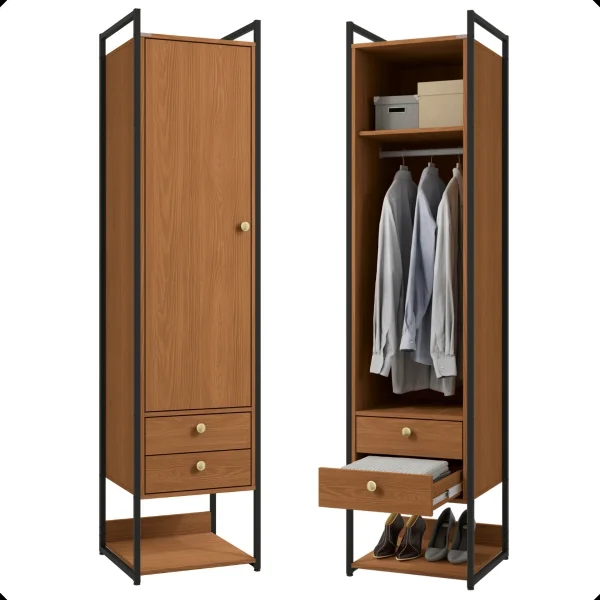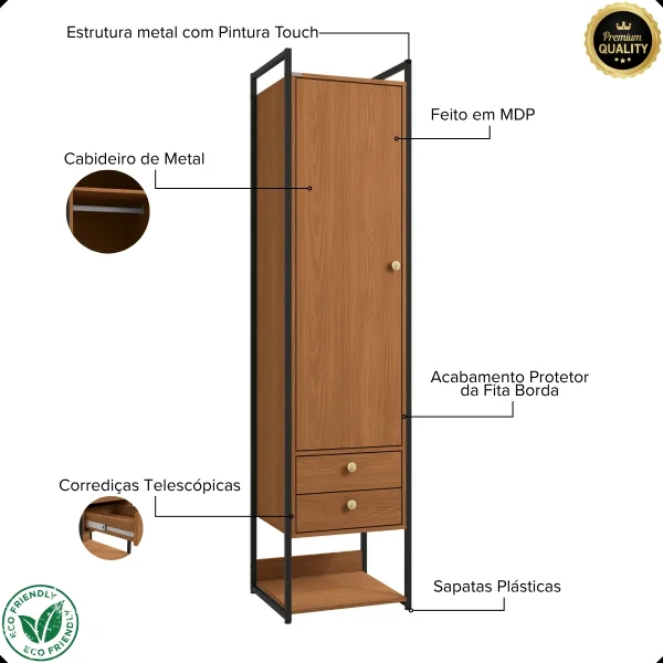 - Guarde Suas Roupas com Estilo: O cabideiro metálico interno é ideal para jaquetas, camisas e casacos.