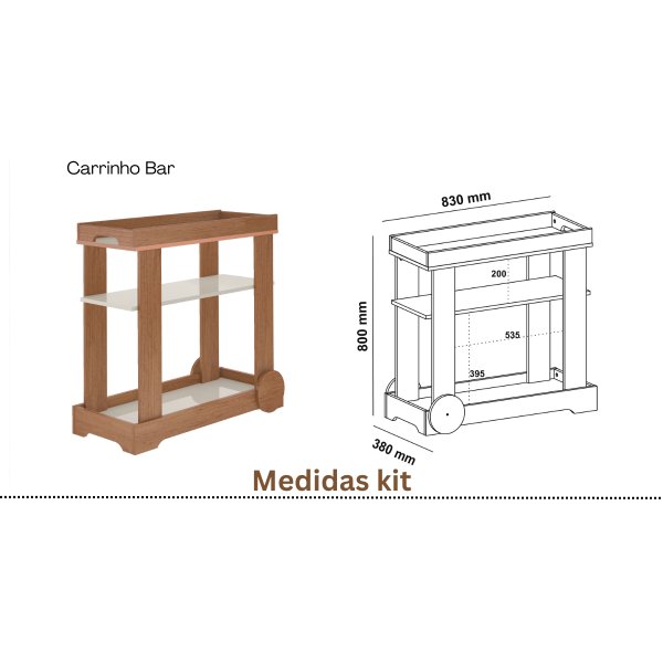 - Entretenimento com Mobilidade: O Carrinho Bar de 80cm conta com rodízios funcionais e roda decorativa, permitindo que você transporte o ponto de drinks para perto dos convidados com a elegância de um hotel boutique.