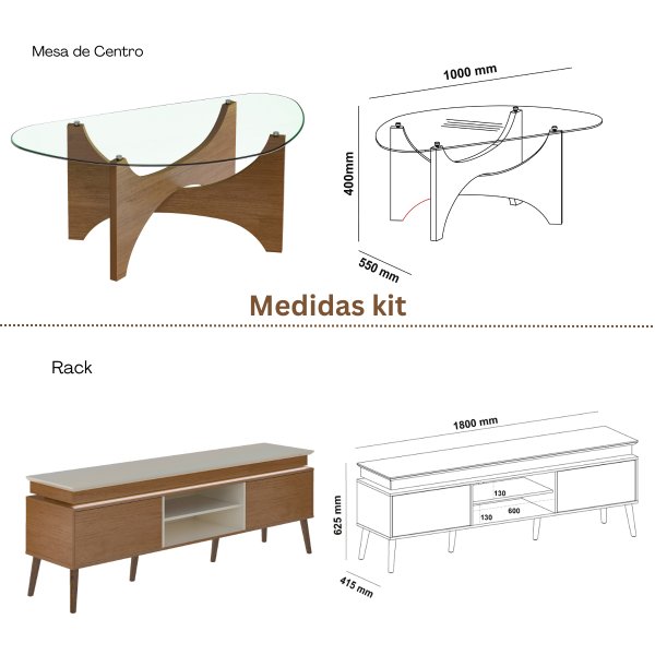 | Material Principal | MDF 25mm e Tampo em Vidro Temperado 6mm |
