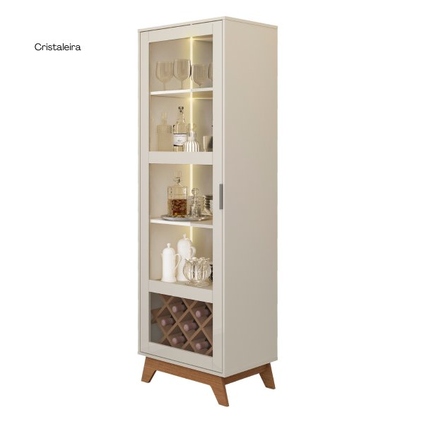 - Exposição Intencional: A porta de vidro de 3mm da cristaleira expõe seus itens e não serve para esconder bagunça, exigindo que você selecione apenas suas melhores garrafas para o bar integrado de 10 nichos.