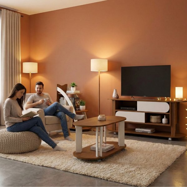 - Contraste Orgânico: O encontro do tom Cedro com o Off White fosco cria uma atmosfera de acolhimento contemporâneo que valoriza qualquer estilo de decoração.