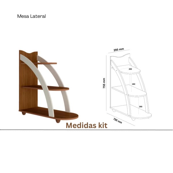 | Peso Suportado (Mesas) | Centro: 10kg | Apoio: 3kg por prateleira |