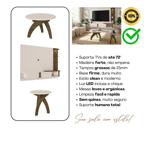 A linha Toronto e Jade foi selecionada para mudar isso: imagine sua TV de 72 polegadas em um painel de 2 metros com luz de LED, enquanto as mesas firmes em MDF de 25mm apoiam seu café com total segurança.